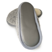 Подошва имеет верхний слой из натуральной шерсти, внутренний слой - упругая пенка, смягчающая шаги, и нижний слой из влагостойкой искусственной кожи.